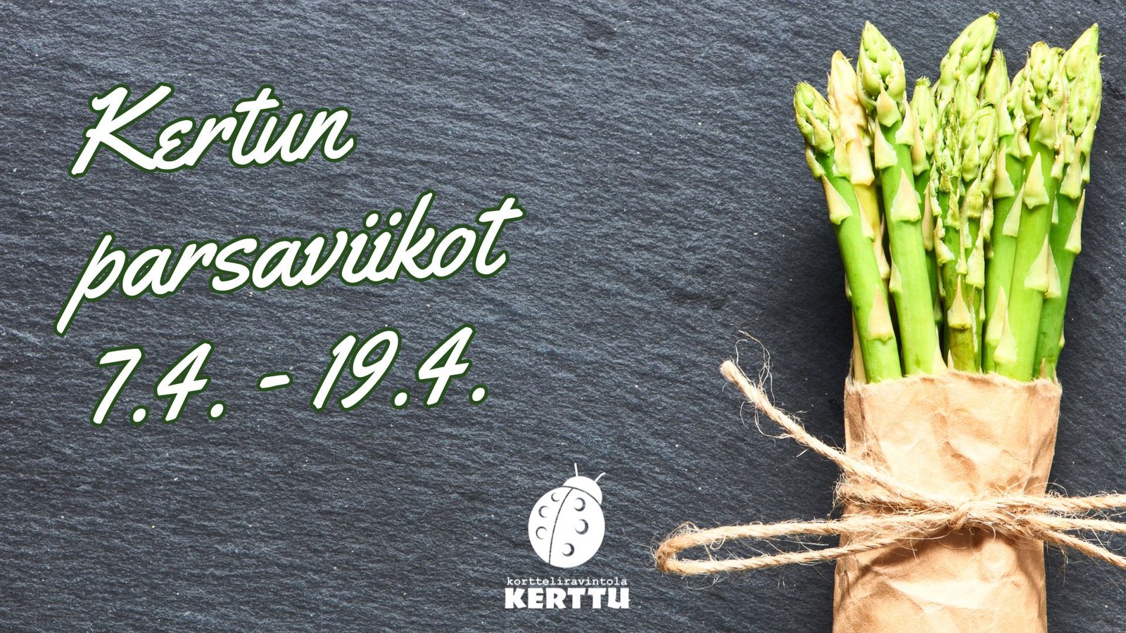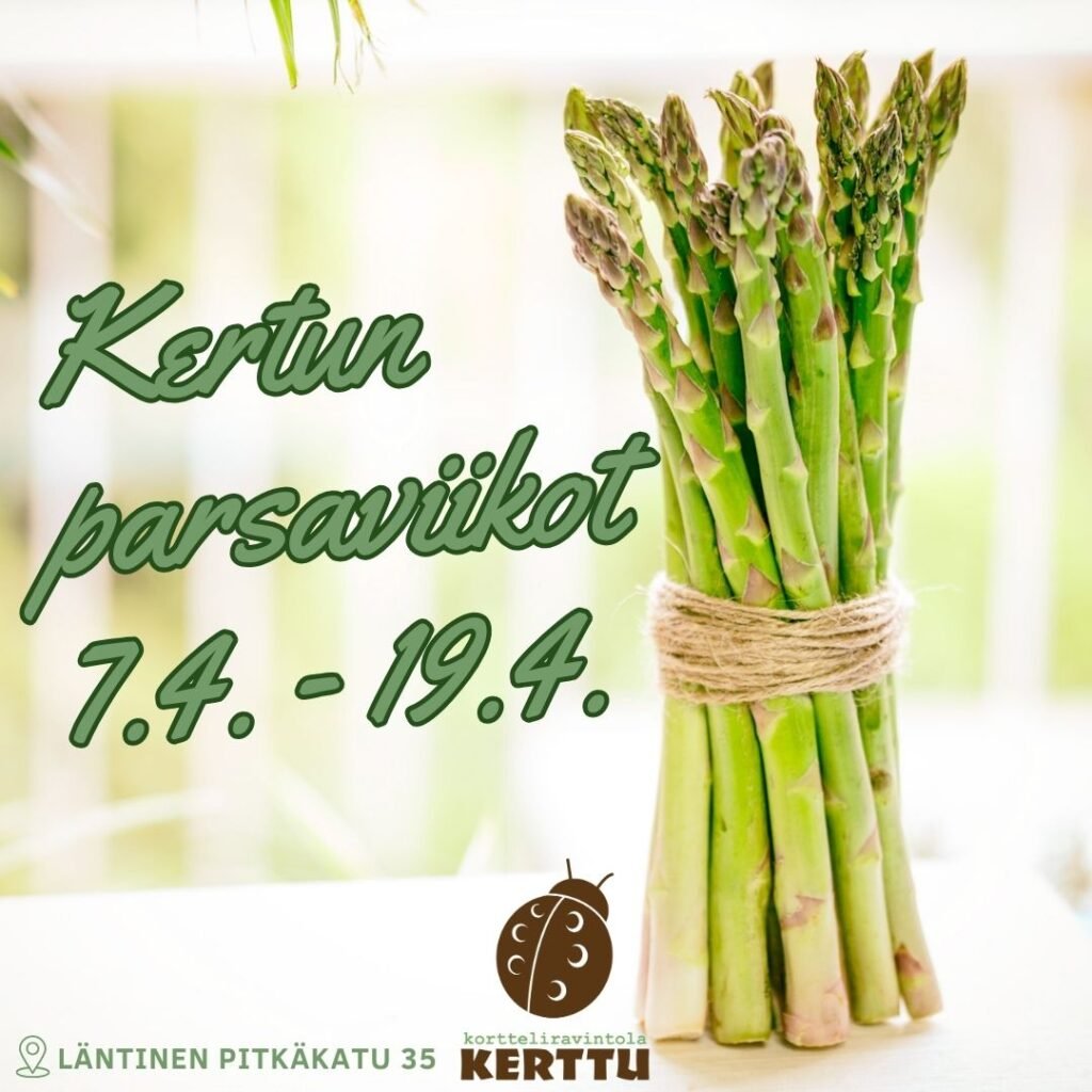 Tervetuloa herkuttelemaan Kertun Parsaviikoille 7.4.–19.4.2026. Tuoretta parsaa, klassisia makuja ja Kortteliravintolan rentoa tunnelmaa.
